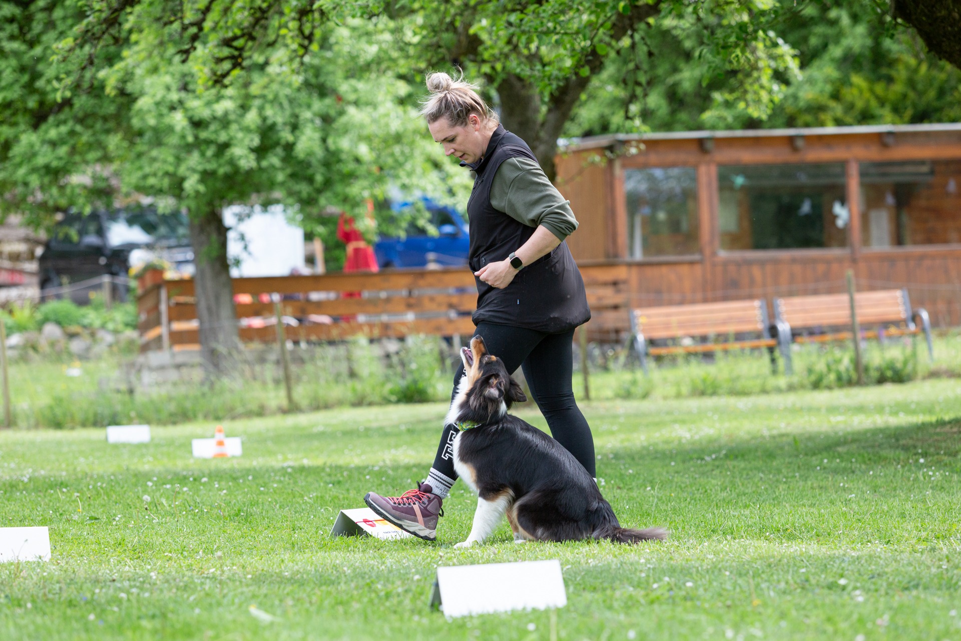 Auf einem ausgeschilderten Parcours arbeitet ihr als Team verschiedene Übungen ab – wie Wendungen, Tempowechsel, Sitz/Platz-Kombinationen oder Slalom um Pylonen.