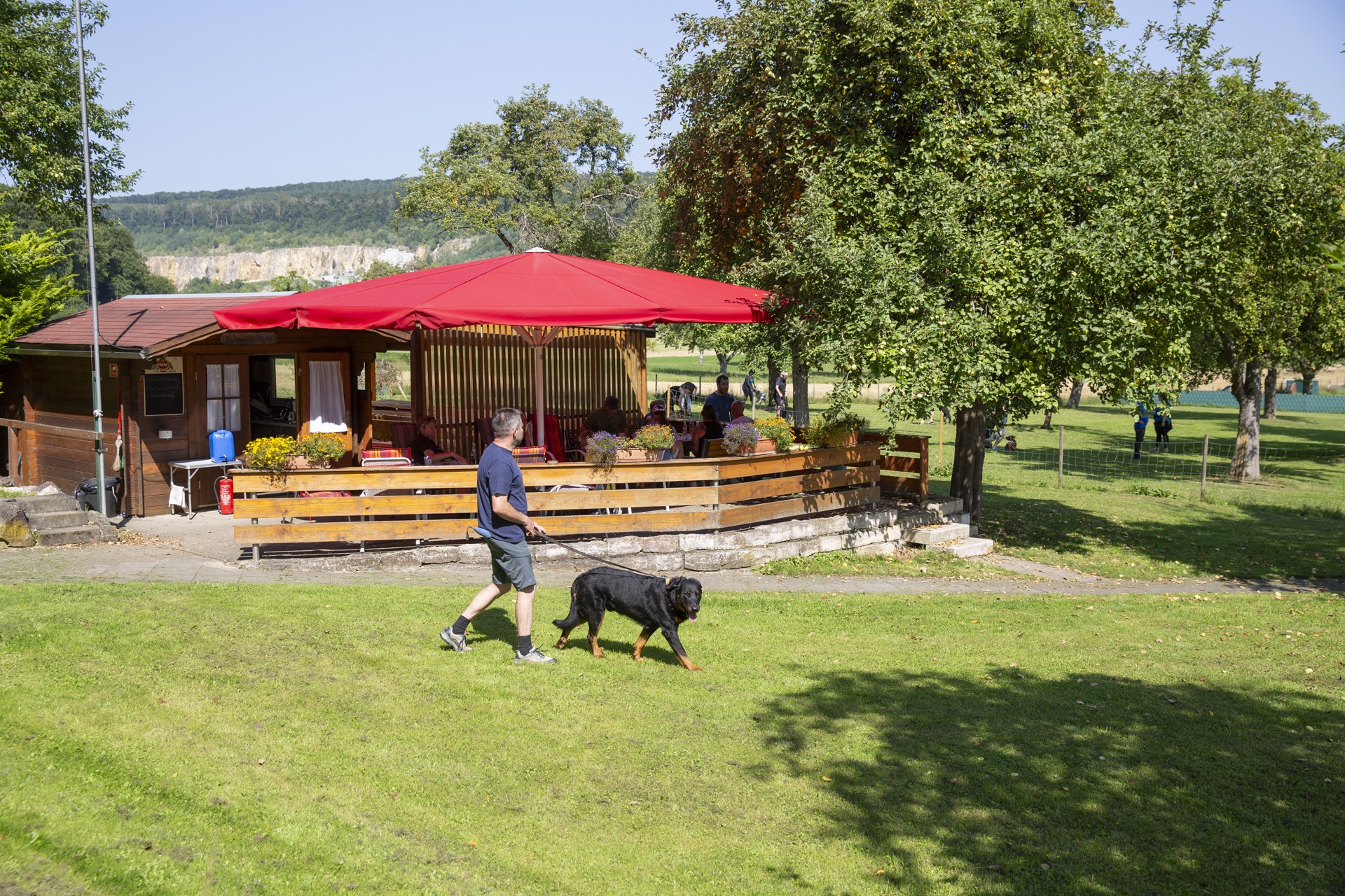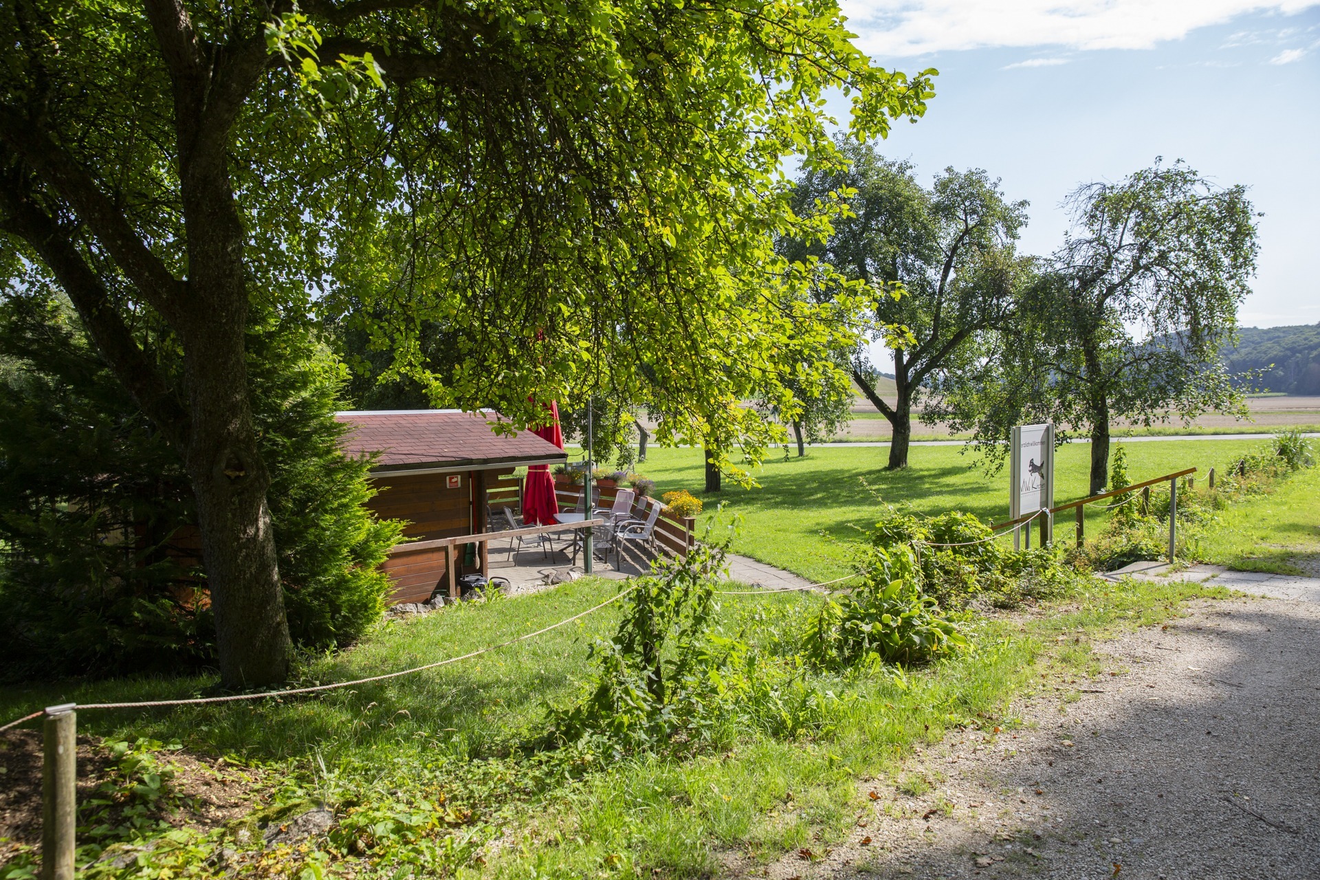 Gibt’s bei uns keine stille Leine: In unserem überdachten Sitzbereich darf gschwätzt, glacht, gfrogt oder verschnauft werden.